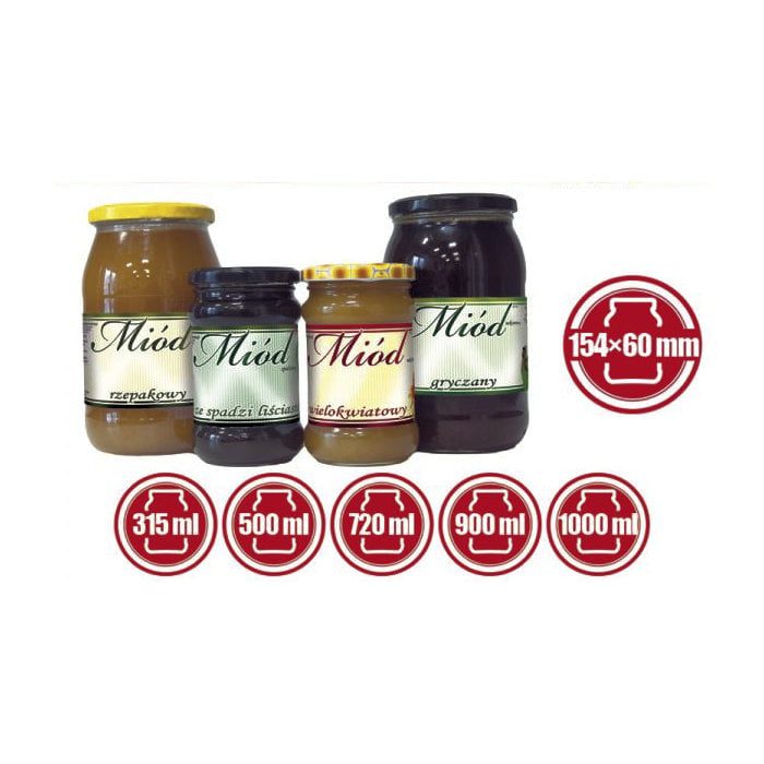 Paczka dużych etykiet na miód – pasują idealnie na duży słoik 900ml i na średnie słoiki od 400ml.