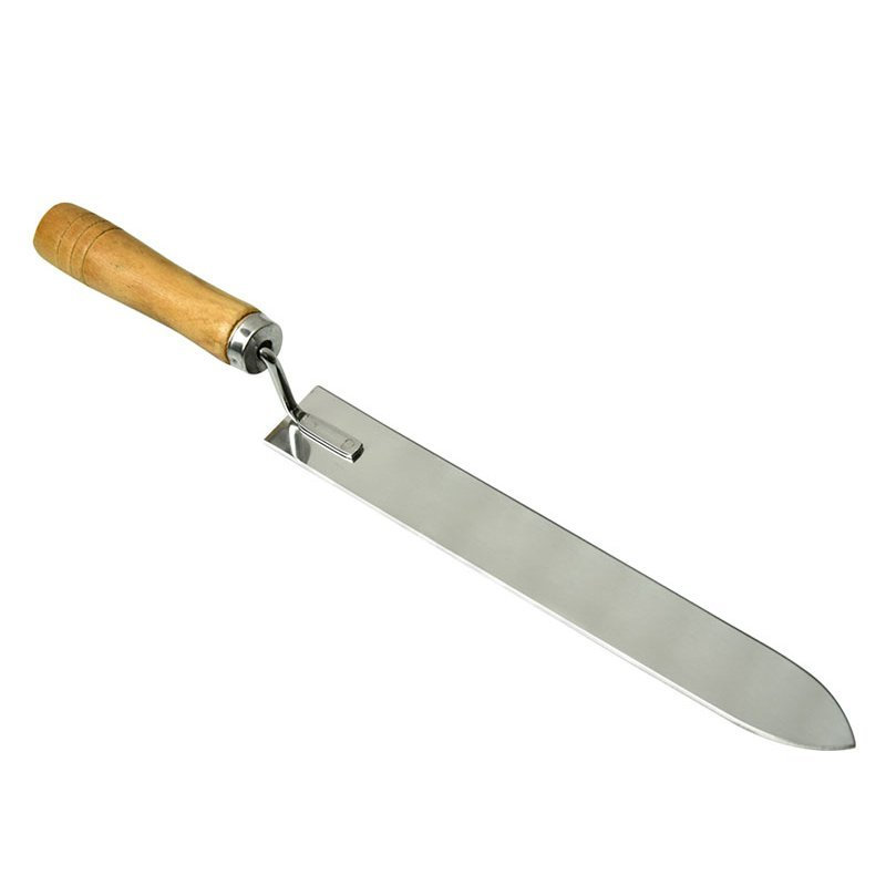 Nóż pszczelarski doskonały do odsklepiania plastrów przed wirowaniem lub do innych prac. Płaskie, obustronnie wyostrzone ostrze wygięte ku górze pozwala na precyzyjne i łatwe ściąganie zasklepów.